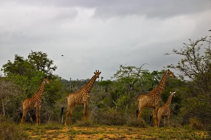 As Girafas são animais sociais que vivem em rebanhos abertos e soltos, sem um líder específico. Elas possuem pernas e pescoços longos, tanto o macho quanto a fêmea possuem uma pelagem malhada. Ao comer folhas de árvores altas, as girafas abrem espaços para outros animais se alimentarem e se desenvolverem, promovendo a biodiversidade.
